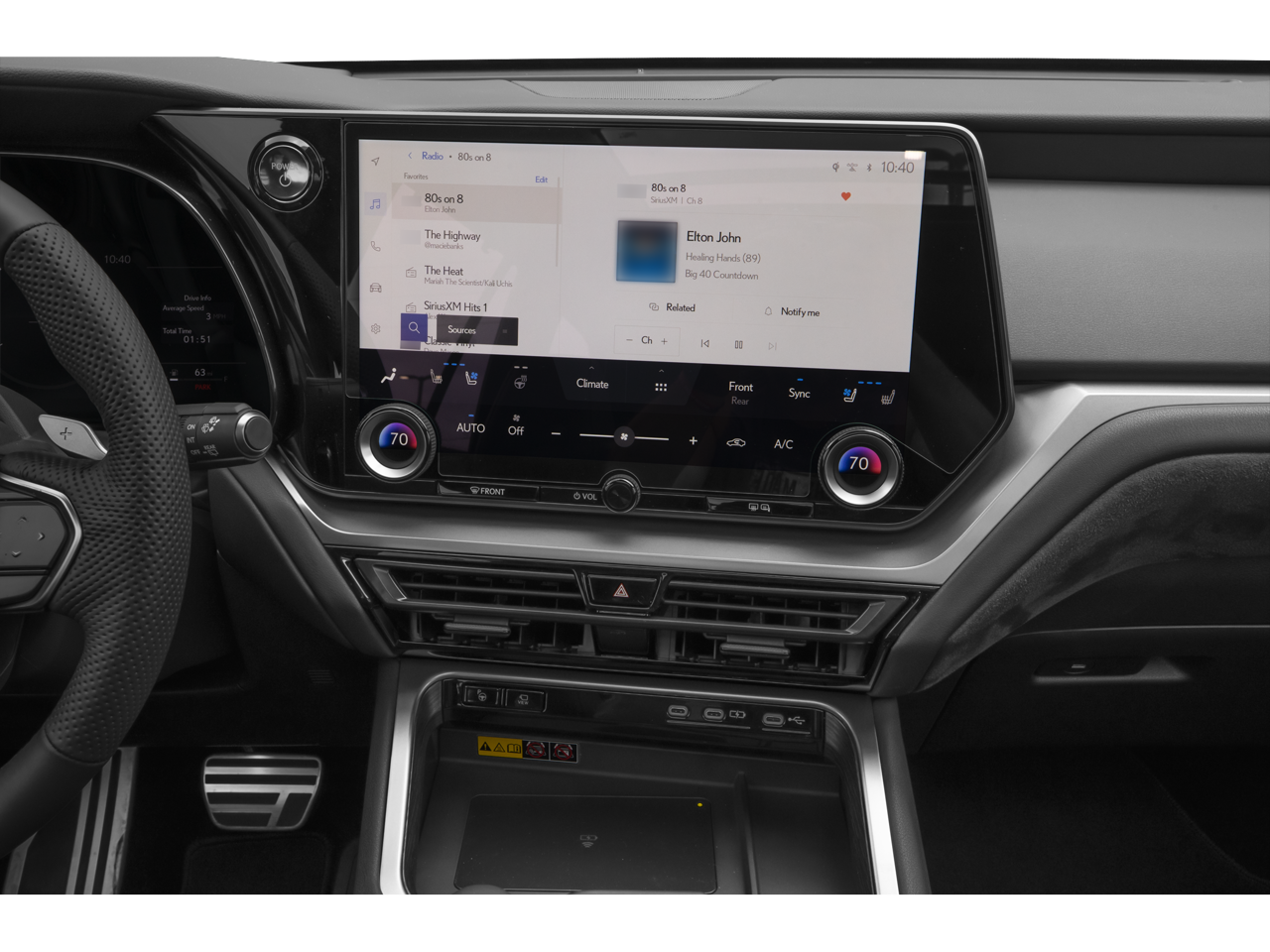 - Radio: Lexus Interface w/Mark Levinson Audio -inc: 21 speaker PurePlay surround sound, 14 inch touchscreen display, Safety Connect and Service Connect w/up to 10-year trial, Remote Connect 3-year trial, Wi-Fi Connect (AT&T hotspot) w/up to 30-day/3GB trial, Drive Connect w/cloud navigation, Intelligent Assistant and Destination Assist 3-year trial, wireless Apple CarPlay integration and wireless Android Auto compatibility